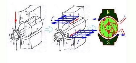 載流的轉子(即電樞)導體將受到電磁力f的作用f=Blia(左手定則)