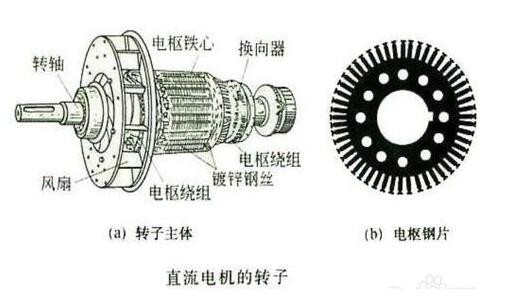 轉子部分的電樞鐵芯是主磁路的組成部分,電樞繞組由一定數(shù)目的電樞線圈按照一定的規(guī)律鏈接組成,是直流電機的電路部分,產(chǎn)生感生電動勢,進行機電能量的轉換。而換向器主在直流發(fā)電機中主要起整流的作用,而在電動機中起的是逆變作用。